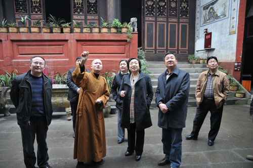 在调研过程中,黄建琴副主席强调:我市信教群众众多,宗教影响广泛,佛教、道教、伊斯兰教、天主教、基督教俱全,寺观教堂是信教群众进行宗教活动、满足宗教生活需要的场所,也是宗教教职人员履行教职、潜心修持、进行宗教研究、服务信教群众的场所。要加强对创建工作的组织领导,积极引导宗教界热爱祖国,拥护社会主义制度,努力使教义教规与社会主义社会相适应。要以制度化、规范化、法制化管理宗教活动为创建工作着力点,着力促进宗教内部的和谐,着力促进宗教之间的和谐,努力提高寺观教堂在财务管理、人才培养、抵御渗透、维护稳定等方面的能力。要不断加强宗教界代表人士和教职人员队伍建设,努力把寺观教堂建设成为爱国爱教、知法守法、团结稳定、活动有序、教风端正、管理规范、安全整洁、服务社会的和谐寺观教堂。