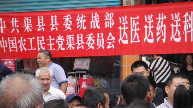 2012年6月6日,农工党渠县县委联合中共渠县县委统战部到清溪场镇开展“送医、送药、送科技”下乡活动。活动为广大群众送发农业、卫生、科技宣传资料400余份,配送价值2000余元的医疗药品,组织我党党员医卫界专家为当地群众进行健康咨询和外科、内科、妇科、中医科、量血压的诊治、开出处方100余张。