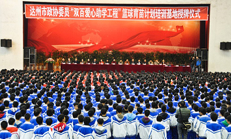 据了解,市政协委员“双百爱心助学工程”篮球育苗计划,是一项强健体魄、培育人才的助学工程,是一项服务群众、助解民困的光彩事业。市政协将长期支持和推进市政协委员“双百爱心助学工程”篮球育苗计划的实施,一如既往地关心教育事业和贫困学生。并号召更多的政协委员、更多的社会成功人士勇担社会责任,伸出援助之手,投身捐建爱心学校、扶助贫困学生的千秋工程,带动更多的企事业单位和有识之士投入到捐资助学活动中来,在全市营造关爱教育、关爱贫困学子的浓厚氛围,用爱心为泱泱学子营造一个美好未来。为支持达州教育及体育事业发展,培养更多优秀体育人才尤其是篮球人才,市政协委员、达县巨林实业有限责任公司董事长郭雄出资实施达州市政协委员“双百爱心助学工程”篮球育苗计划,并将培训基地建在达县中学,委托达县中学负责篮球育苗计划的执行工作。达县巨林实业有限责任公司以每年20万元的标准给予达县中学资助,作为篮球育苗计划实施经费。资助时间为五年,合计人民币100万元。