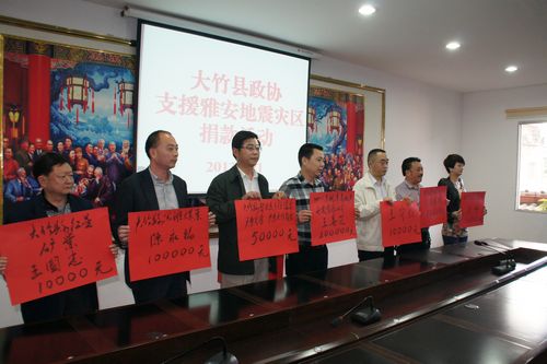 大竹县政协为雅安地震灾区捐款64万元