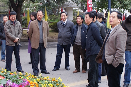 (市政协领导检查花台布置)