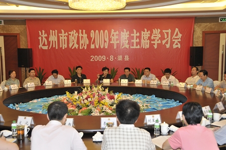 市政协2009年度主席学习会议8月24号在渠县召开。会议围绕更好地履行人民政协的政治协商、民主监督、参政议政职能进行学习研究。学习会由市政协主席康莲英主持并对学习提出要求。