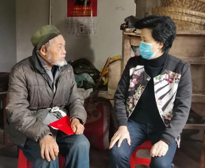 康莲英一行先后来到斌郎街道办许家村、二郎村、木瓜村,看望慰问易娜、苏方才、肖德芬等受疫情影响的困难群众。