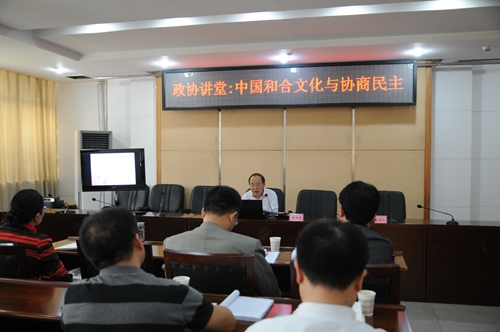 10月15日,市政协举办2015年第十期“政协讲堂”,邀请四川文理学院王道坤教授就《中国合和文化与协商民主》作专题辅导。机关全体干部职工聆听讲座。